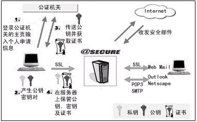 首先,用戶缺乏良好的防范意識,對E-mail安全性問題認識不夠,所以雖然現在的一些客戶端軟件都采用了一些數據加密和數字簽名技術,但真正使用的用戶不多。當然,這也是由于這些技術本身操作復雜性引起的,所以,對于這個問題的解決方向應著眼于將加密和數字認證的任務交給服務器端。目前,如在@SECURE中采取的策略就是用戶將個人密鑰交給郵件服務器保管。