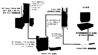 ----這5家公司的解決方案是以電視墻的形式展示的。由36 臺電視機和相應(yīng)的機頂盒、VDSL調(diào)制解調(diào)器、裝有Oracle視頻服務(wù)器(OVS)的SGI Origin 200服務(wù)器以及Marconi的ATM交換機組成。這36臺電視機分別模擬36個終端用戶。實際上,這套系統(tǒng)能帶很多終端用戶,而且對內(nèi)容傳輸?shù)谋忍芈屎退x擇的網(wǎng)絡(luò)協(xié)議都沒有限制。這個解決方案可為服務(wù)提供商提供完整的端到端解決方案,它的特點是易于擴展、可有效降低經(jīng)營成本、便于數(shù)據(jù)管理并使用戶得到較高的滿意度。這樣一套完整的解決方案解決了困擾寬帶多媒體應(yīng)用方案的相互依賴問題,從而使服務(wù)提供商可以專心致志地考慮自己的經(jīng)營和收入模式,而不必將寶貴的時間花在開發(fā)使自己的服務(wù)發(fā)揮作用所需的各種構(gòu)件上。這5家公司發(fā)揮了各自的優(yōu)勢,提供了各種構(gòu)件范疇內(nèi)所需的專門技術(shù),進而給出了一個比較全面的應(yīng)用解決方案。這樣一套配合默契的解決方案一定會對寬帶多媒體的進一步普及起到推動作用。