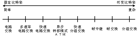 在通信網(wǎng)絡(luò)發(fā)展過程中,出現(xiàn)了多種信息傳輸方式,它們分別適應(yīng)不同業(yè)務(wù)速率,如下圖所示。這里只對(duì)比電路傳送模式和分組傳送模式兩個(gè)極端情況,對(duì)其他模式,讀者可以自行參照下圖和相關(guān)資料。
