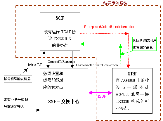 SRF收集終端用戶的輸入信息后把信息返回SCF(綠色虛線),SCF向SSF發(fā)出DisconnectForwardConnection指令,要求SSF拆除到SRF的連接。