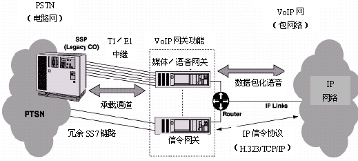 由于通過IP網(wǎng)傳送話音市場的迅速增長,我們有必要對(duì)許多設(shè)備供應(yīng)商都在推出的VoIP網(wǎng)關(guān)作一個(gè)介紹。VoIP網(wǎng)關(guān)用于連接電話網(wǎng)(就是基于電路的PSTN)和基于數(shù)據(jù)包的IP網(wǎng),使得呼叫能通過IP網(wǎng)絡(luò)無縫地連接到PSTN電話。最初,網(wǎng)關(guān)只支持比較少的呼叫,一般只支持單個(gè)的T1或E1,最多只能支持幾百個(gè)話音電路。這種早期的網(wǎng)關(guān)一般使用ISDN協(xié)議或隨路信令協(xié)議連接到PSTN。然而隨著基于IP話音應(yīng)用的迅速成長,并被各運(yùn)營商所采用,網(wǎng)關(guān)容量逐漸得到了擴(kuò)大,能夠支持多達(dá)數(shù)千個(gè)呼叫。網(wǎng)關(guān)規(guī)模的擴(kuò)大和運(yùn)營級(jí)網(wǎng)關(guān)的要求,使得SS7成為連接IP網(wǎng)關(guān)和PSTN必須采用的信令協(xié)議。