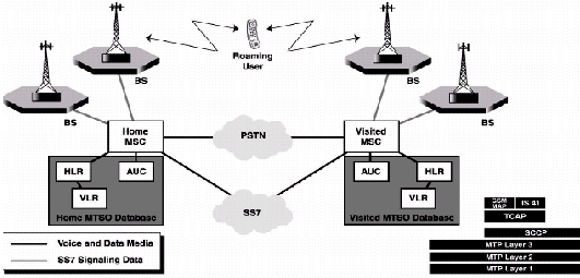 除了空中接口,在無線系統(tǒng)的設(shè)計(jì)中支持無線用戶的移動(dòng)性是主要的挑戰(zhàn)。無線系統(tǒng)對(duì)信令的要求明顯要比實(shí)現(xiàn)類似功能的地上有線系統(tǒng)要苛刻得多。結(jié)果使得無線網(wǎng)絡(luò)必須組合更先進(jìn)更全面的信令控制系統(tǒng)。即使移動(dòng)單元在它的歸屬網(wǎng)絡(luò)中,系統(tǒng)也要隨時(shí)跟蹤它的位置,因?yàn)楹羧、認(rèn)證和傳遞功能需要知道它當(dāng)前所處的位置。系統(tǒng)運(yùn)營商提供給用戶的移動(dòng)等級(jí)有越來越復(fù)雜的趨勢,這就要求在系統(tǒng)間必須應(yīng)用復(fù)雜的信令才足以支持漫游、登記和路由尋找等功能。這就是無線系統(tǒng)普遍選擇SS7作為信令協(xié)議的原因。