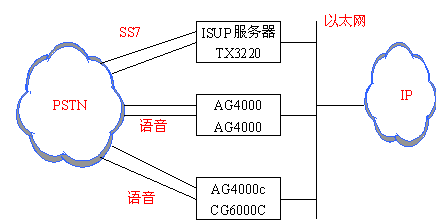 系統(tǒng)中ISUP服務(wù)器通過SS7鏈路和PSTN連接,通過IP網(wǎng)絡(luò)和語音處理機連接,這兩個連接傳送的是信令信號。語音處理機通過話路和PSTN連接,這個連接傳輸?shù)氖钦Z音。