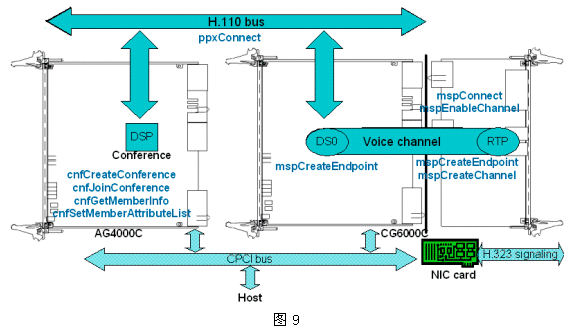 整個(gè)IP會議大概過程可以用圖10來說明,各子流程均由MGCP/H.323的相關(guān)API函數(shù)完成。