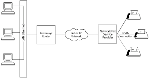 目前,許多的Internet傳真服務(wù)僅能提供存儲轉(zhuǎn)發(fā)傳真,這種服務(wù)在用戶電腦終端和世界其他地方的傳真網(wǎng)關(guān)連接在一起。這是一種傳統(tǒng)LAN傳真技術(shù)的擴展,客戶端的傳真網(wǎng)關(guān)允許客戶端PC或者工作站創(chuàng)建文檔并通過一個通用網(wǎng)關(guān)發(fā)送傳真。