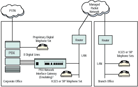 • 場(chǎng)景 2 - 把遠(yuǎn)端辦公室通過一個(gè)包交換網(wǎng)絡(luò)連接到總公司PBX系統(tǒng)上. 基本來說, 網(wǎng)關(guān)把數(shù)字電話功能擴(kuò)展到遠(yuǎn)程辦公室.